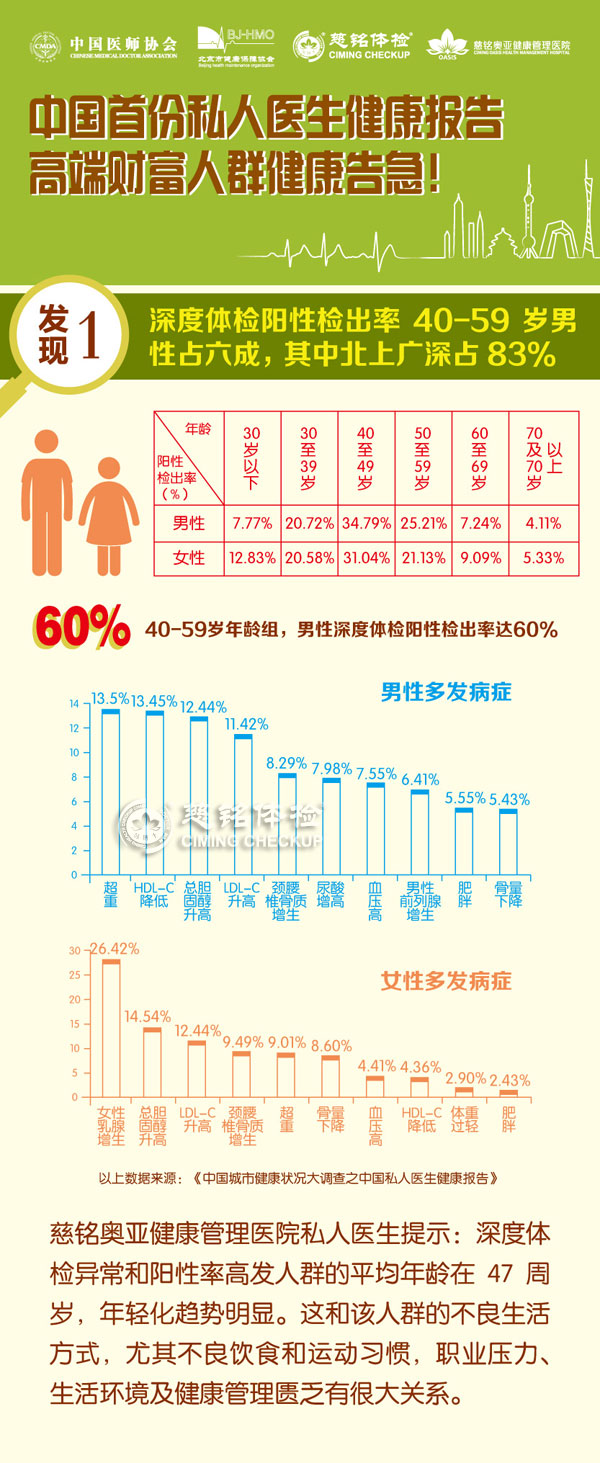?近日,由中國醫師協會HMO、 北京市健康保障協會聯合慈銘集團、慈銘奧亞健康管理醫院共同發布了《中國城市健康狀況大調查之中國私人醫生健康報告》,這是中國健康管理行業發展中的首份